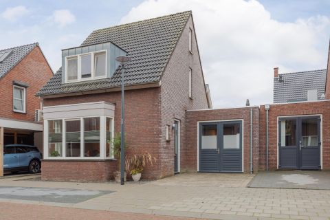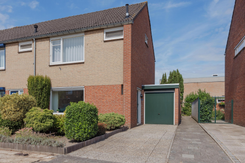 De woning beschikt over een ruime garage met een betonvloer, metselwerk wanden en een houten plafond. De garage biedt voldoende ruimte voor het stallen van fietsen of gereedschap en heeft een inbouwkast voor extra opbergruimte. De garage is bereikbaar vanaf de oprit via dubbele deuren en daarnaast is er een deur naar de tuin aanwezig.